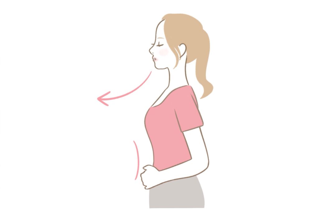 - 背筋を伸ばす(反らさない)