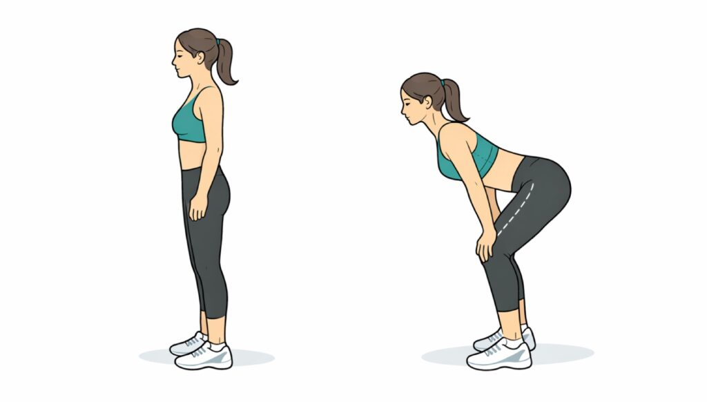 「お辞儀」ではなく「お尻を後ろに引く」意識。