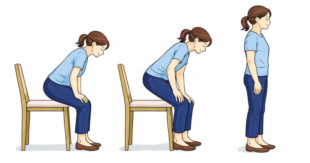 - 太ももに手をついて押す