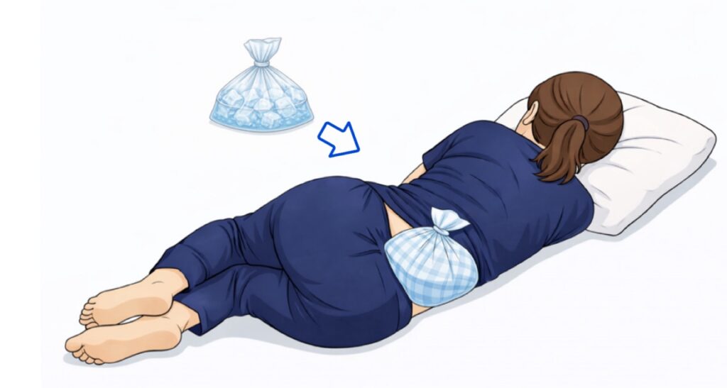※凍傷を避けるため、20分以上当て続けないことと、直接皮膚に当てないことが原則です。