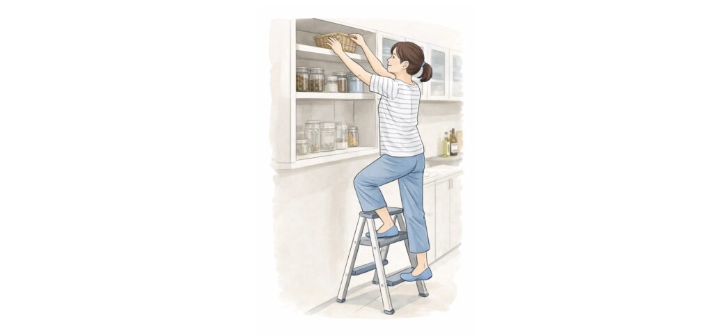 キッチンの上の棚も、腕を高く上げる必要があるため痛みが出やすい動作です。