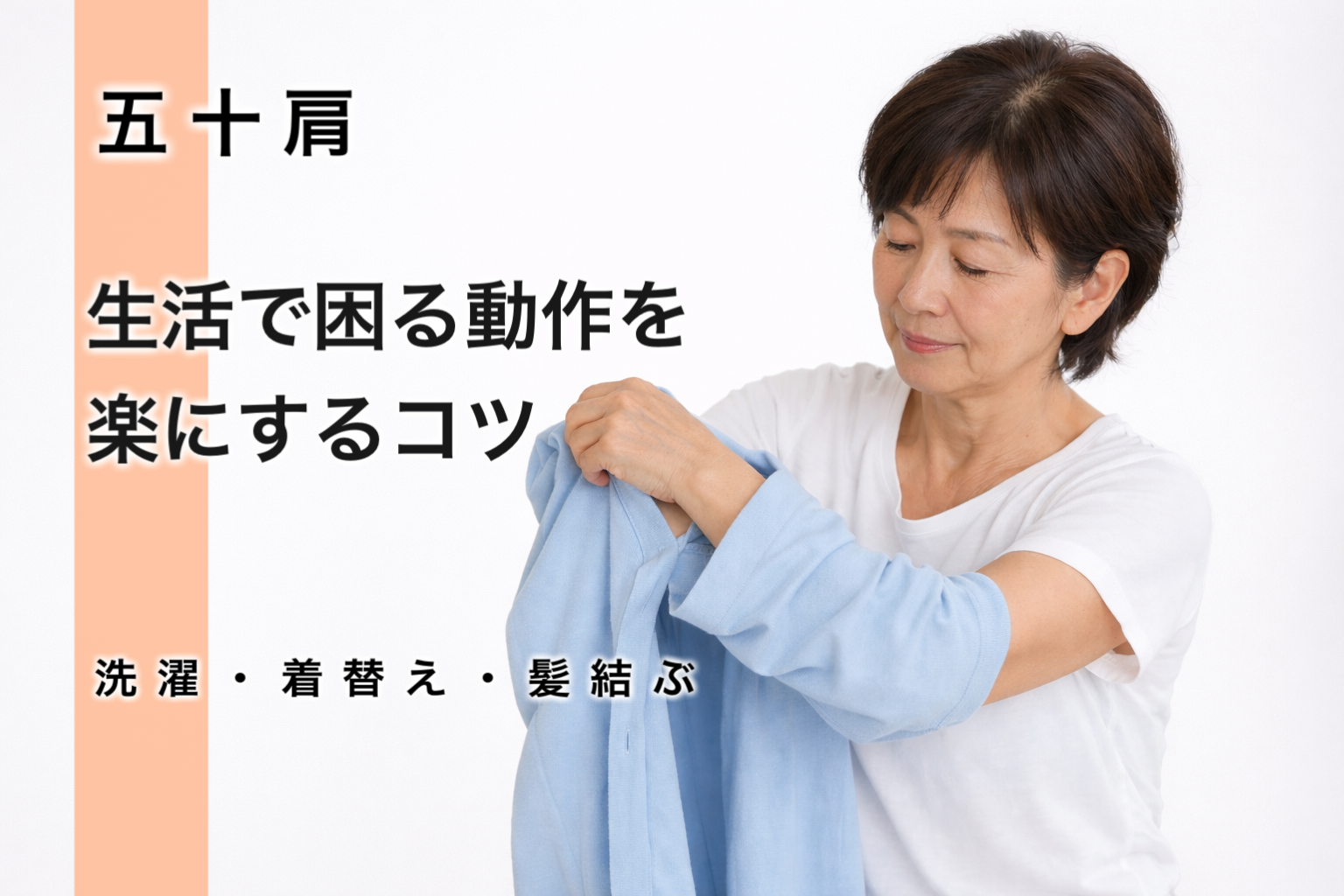 五十肩のときに困りやすい生活動作でも、動き方を少し工夫することで肩の負担を減らすことができます。