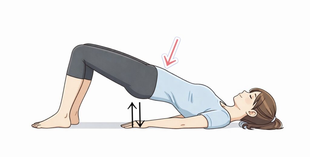 次のステップは軽いヒップリフトを行います。①が出来るようになったら行いましょう。